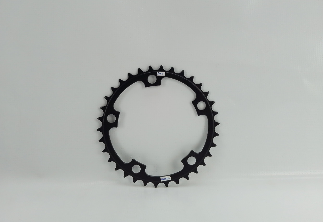 Brand new alloy chain ring, 110mm BCD 34t. Suitable for road bikes. Shimano/SRAM compatible and also compatible with 9-11 speed chains.