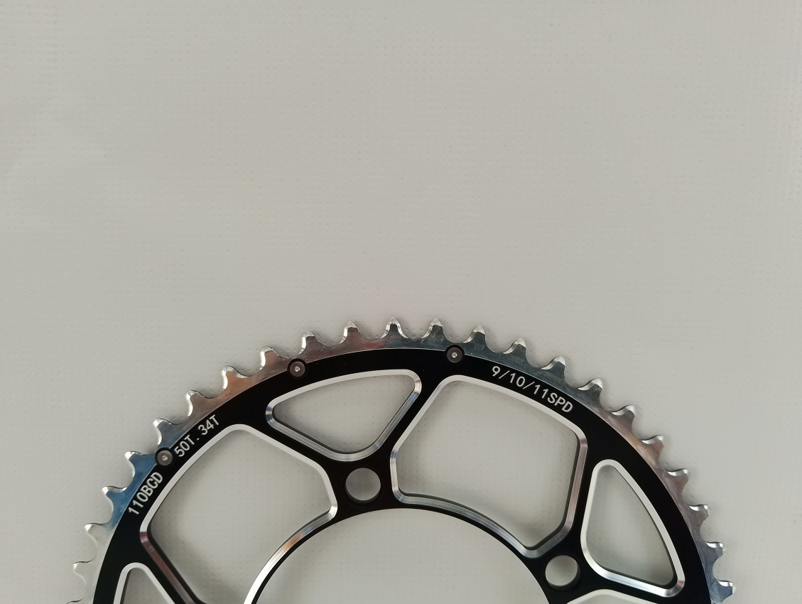 Brand new VXAA alloy chain ring, 110mm BCD 50t. Suitable for road bikes. Shimano/SRAM compatible and also compatible with 9-11 speed chains.