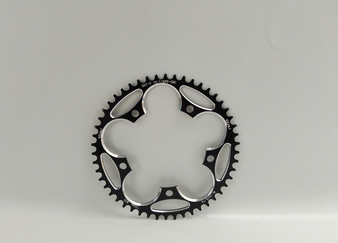 Brand new VXAA alloy chain ring, 130mm BCD 50t. Suitable for road bikes. Shimano/SRAM compatible and also compatible with 9-11 speed chains.