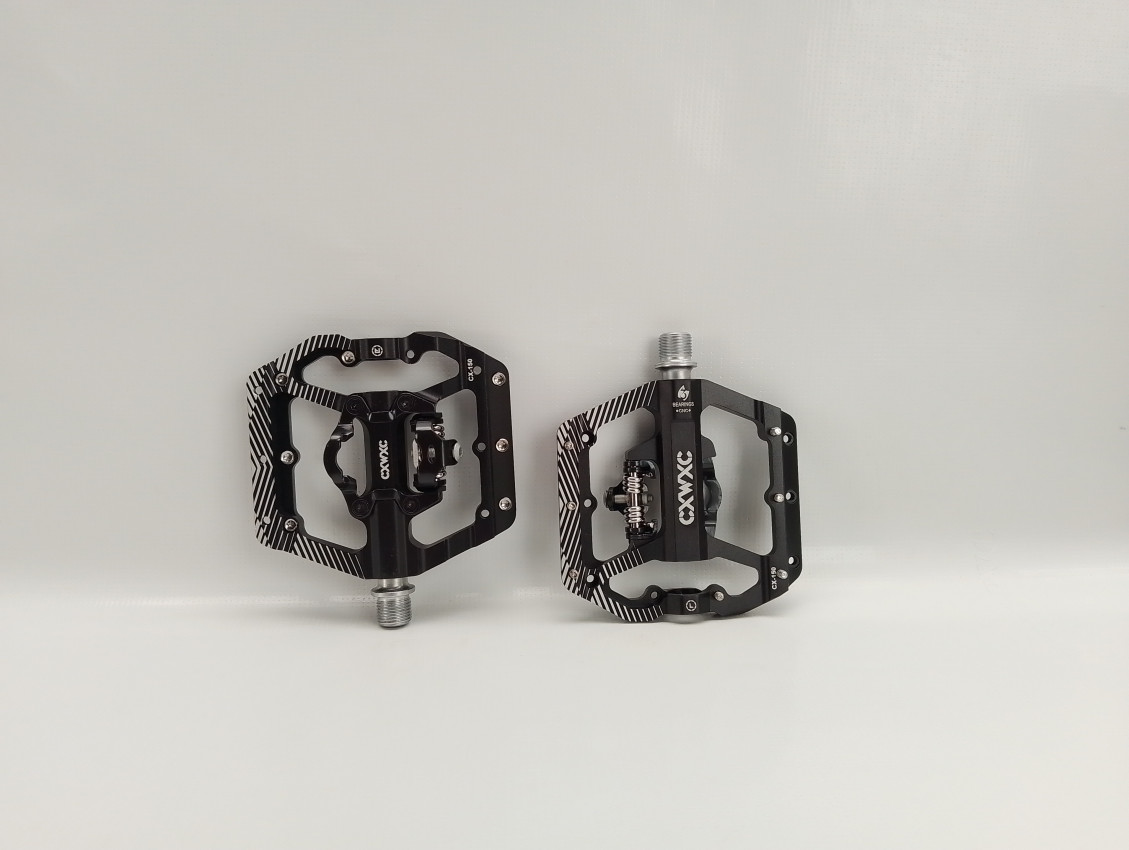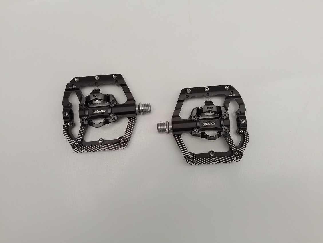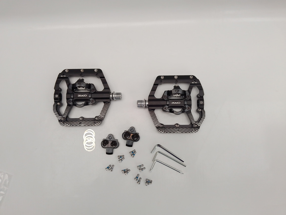 Brand new clipless pedals. Brand, CXWXC. Sealed bearing type. One side flat pedal one side with locking mechanism, Shimano spd compatible. Comes with a pair of cleats.