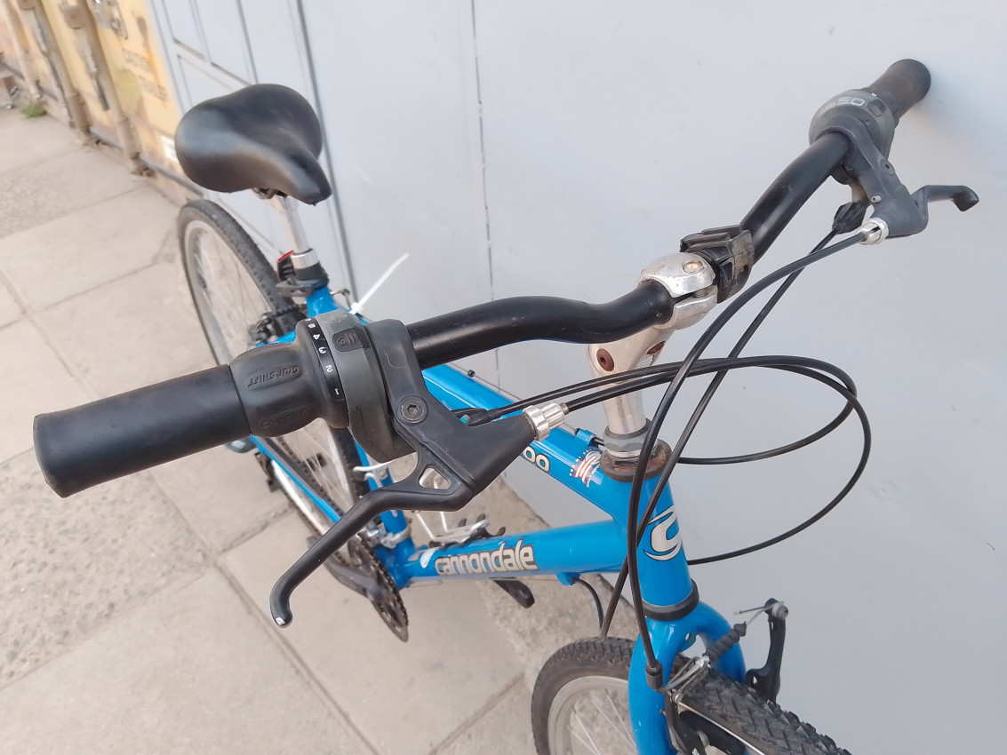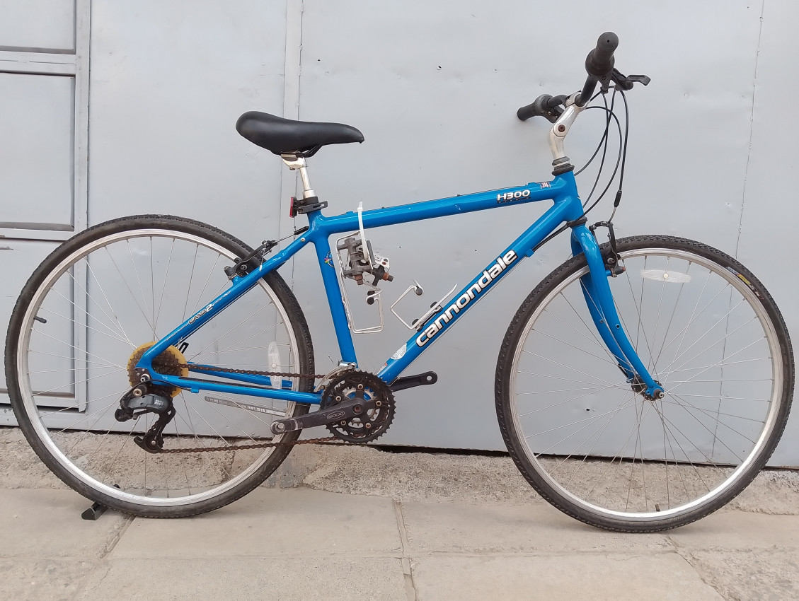 High quality used hybrid bike. Wheel size 700c. Frame material Aluminium. Top tube 22', seat tube height 18'. Gear system 3x8 with grip shifts . Cog type cassette. Other features: sealed BB all wheels have quick release.