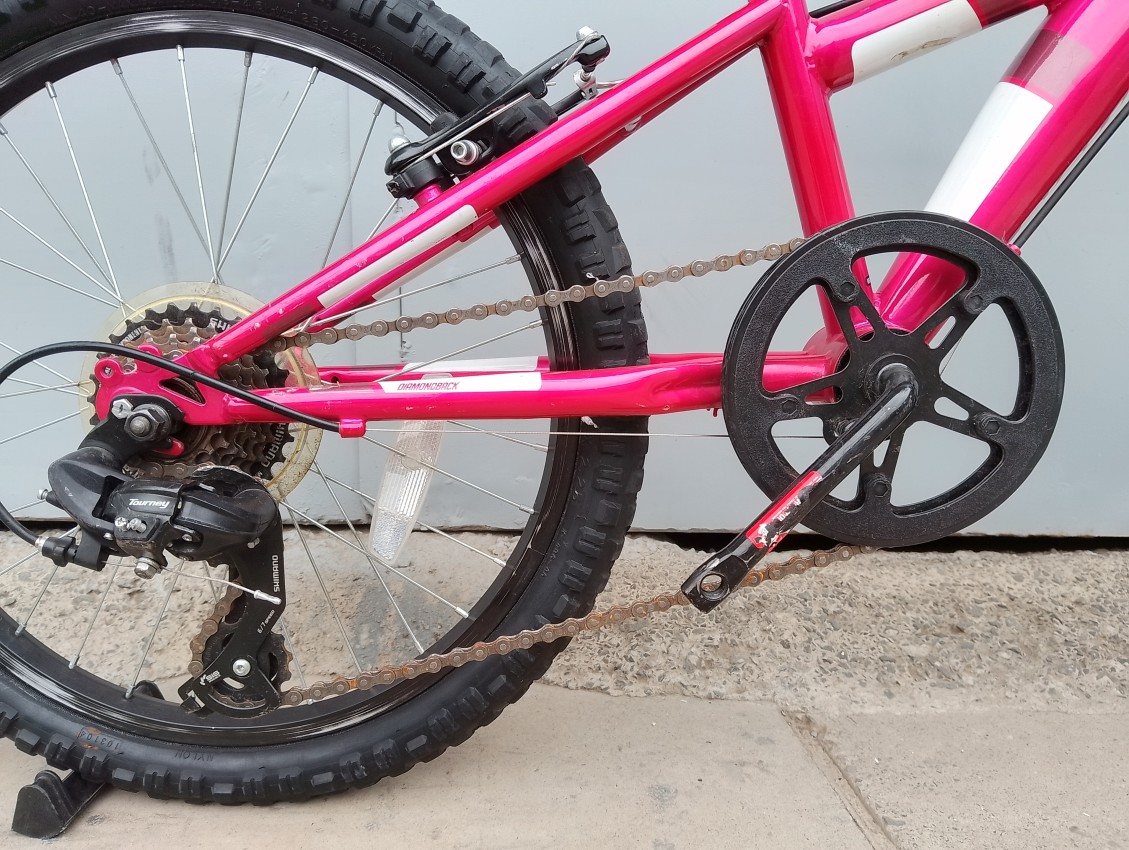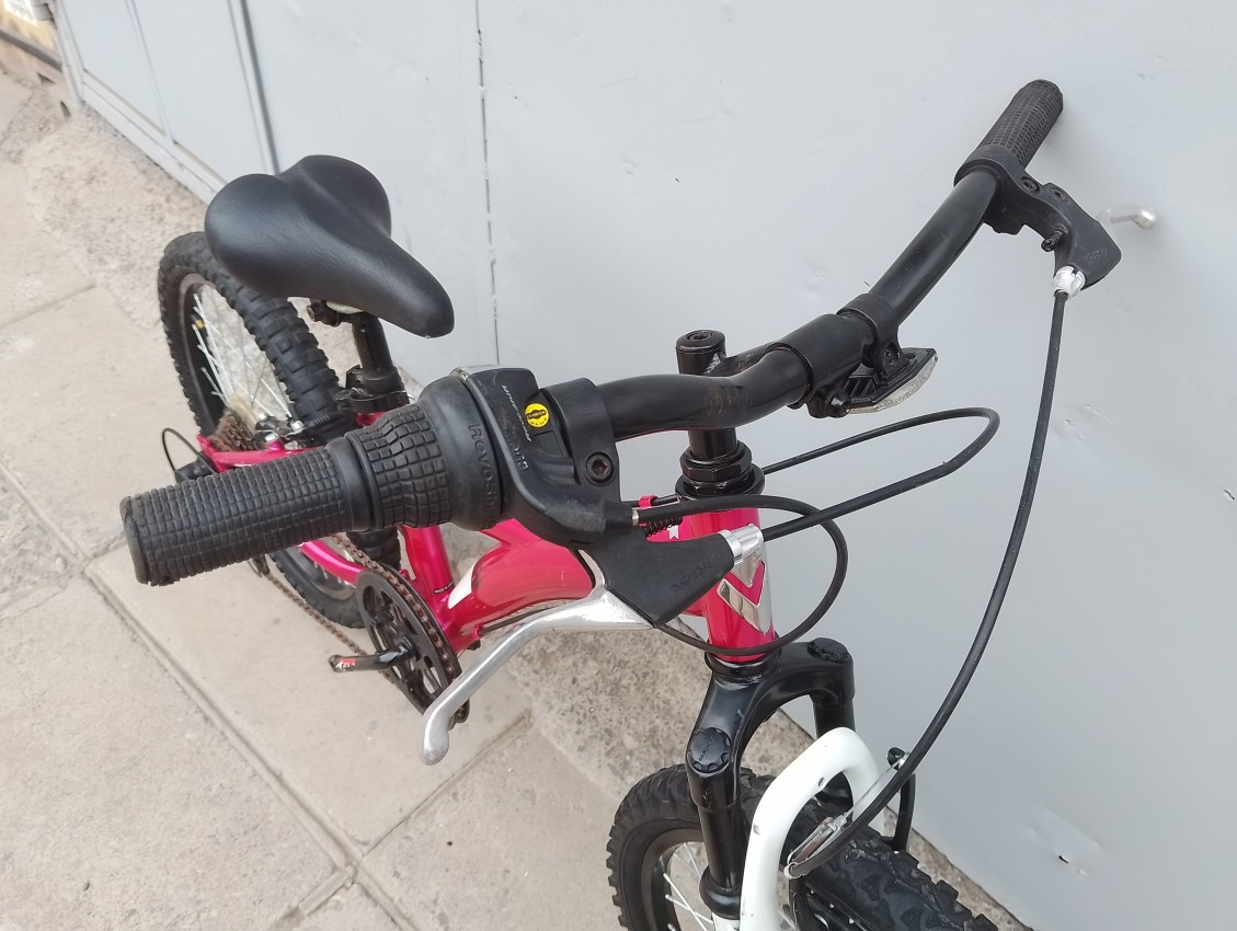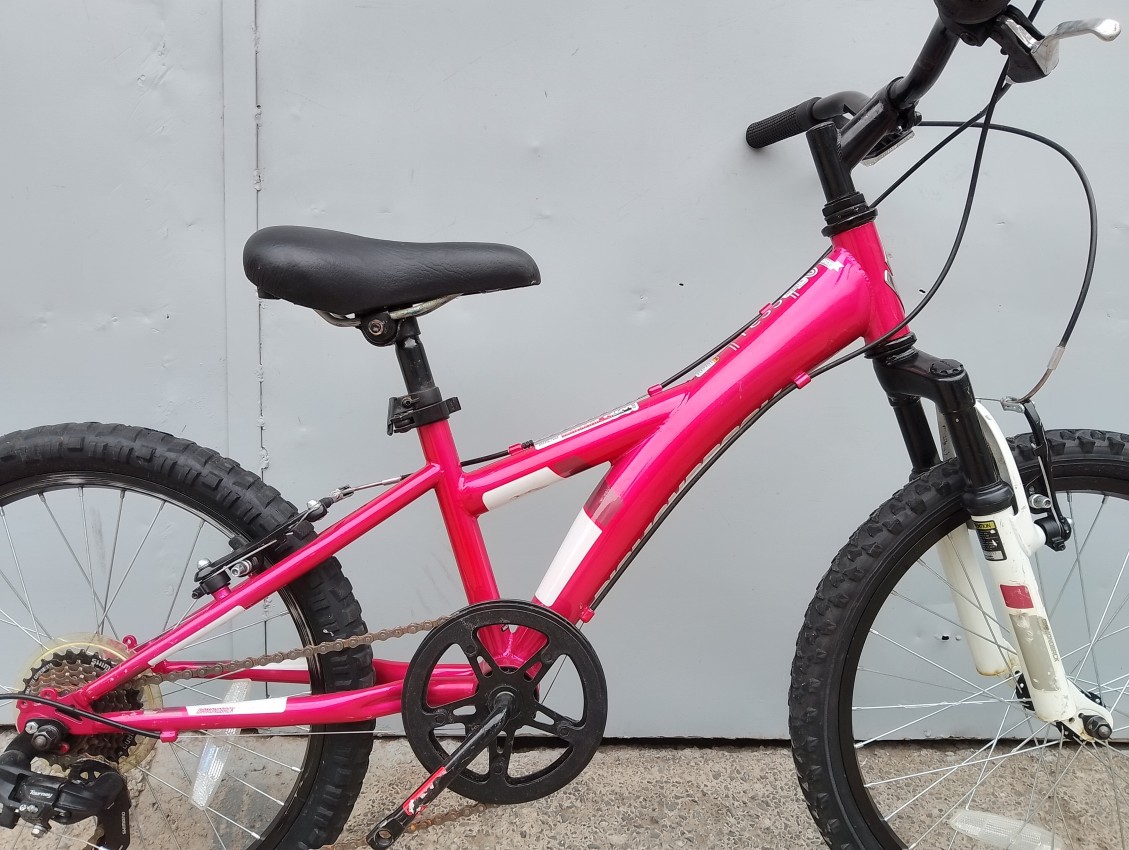High quality used mountain bike. Wheel size 20 Frame material steel. Gear system 1x7 speed with grip shifters. Cog type freewheel. Other features: threaded suspension fork, Suitable for ages 6-11 years.