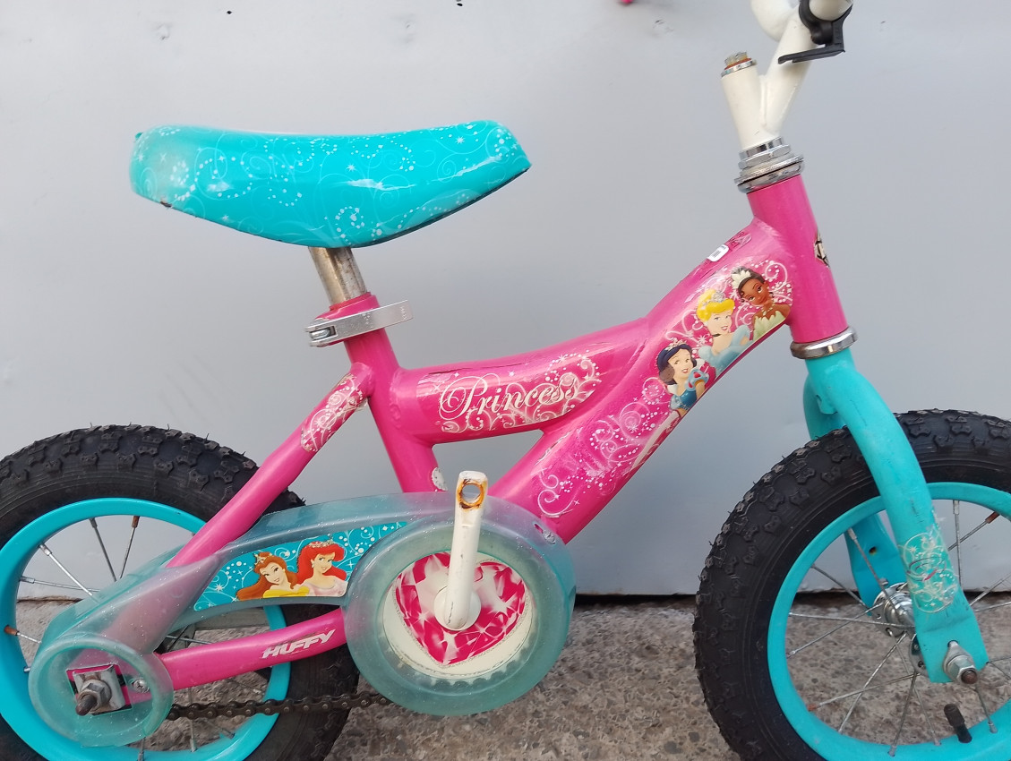 Used kids bike, wheel size 12, brand Huffy , frame material steel. Suitable for age 2-4 years