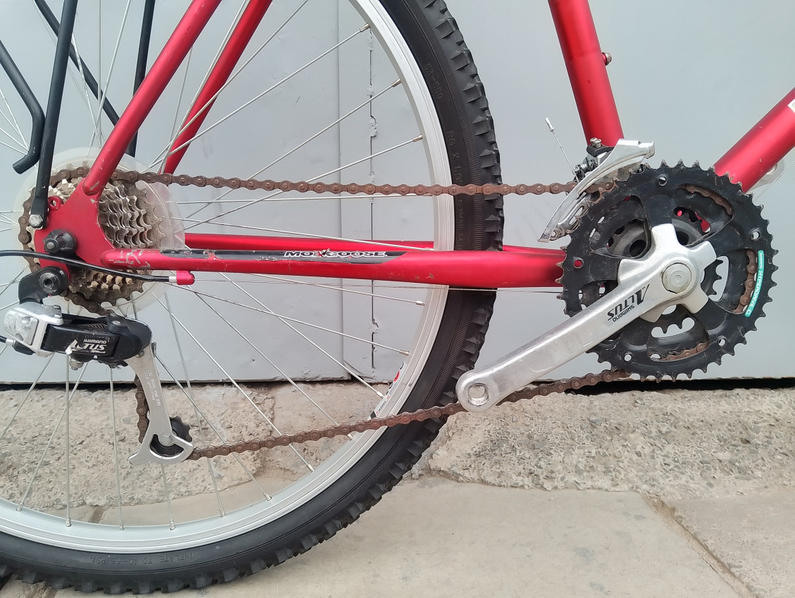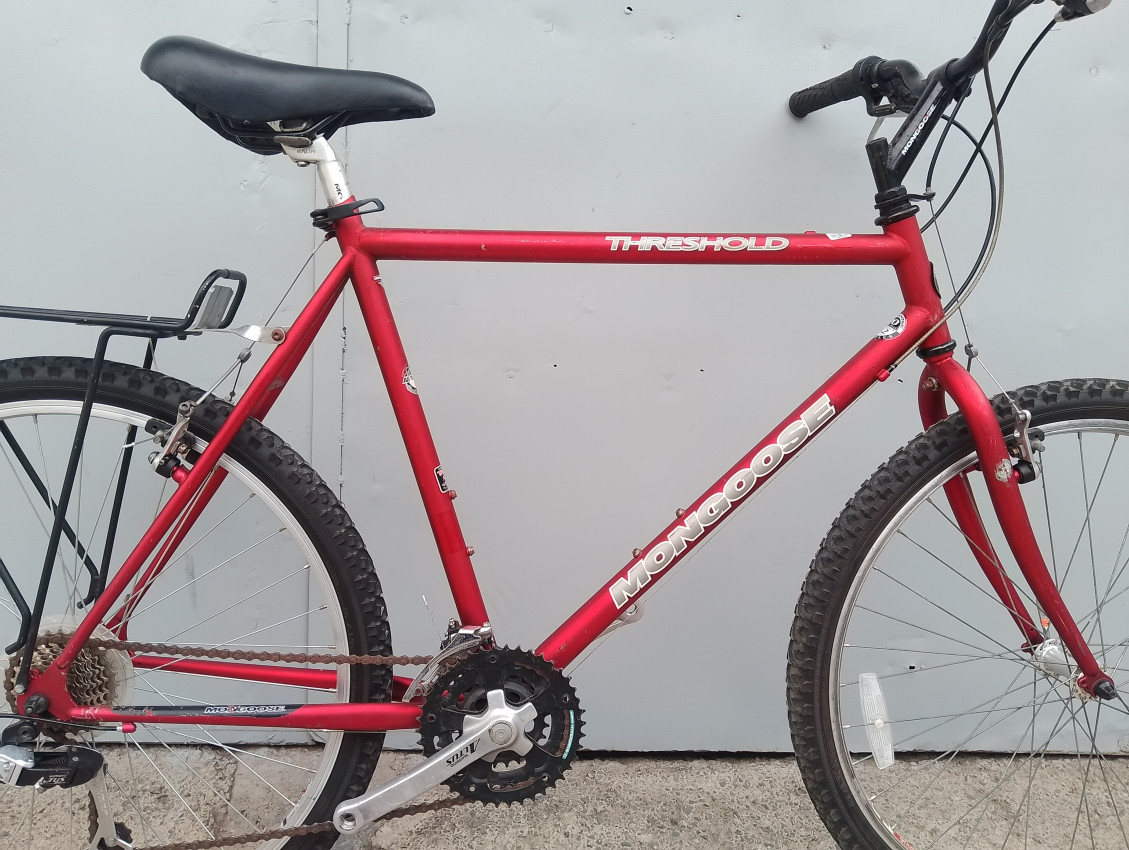 High quality used mountain bike. Wheel size 26. Frame material steel. Top tube 23', seat tube height 22'. Gear system 3x7 with grip shifts. Cog type freewheel. Other features: all wheels have quick release,sealed BB.