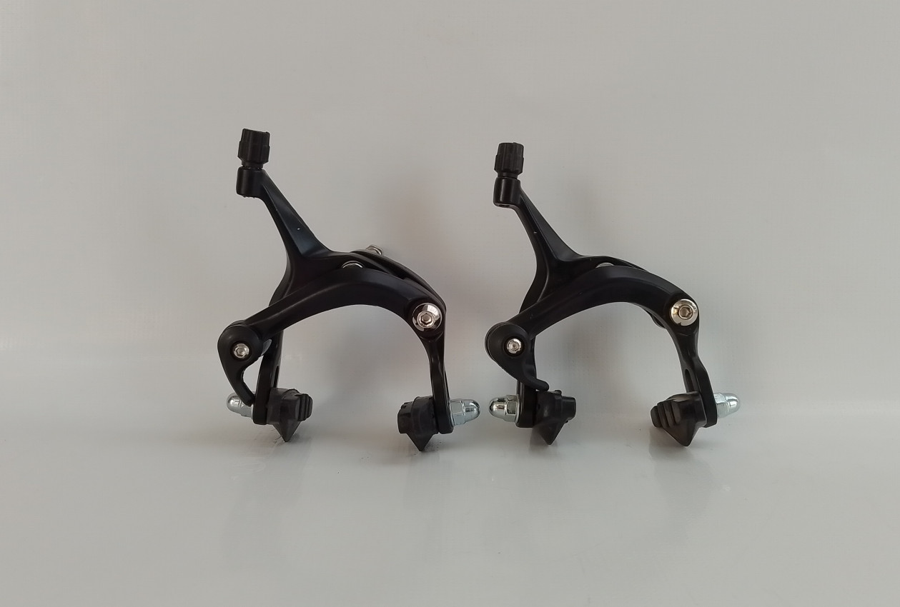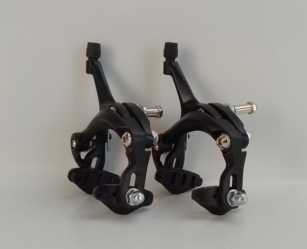 Brand new dual pivoted aluminium alloy road bike brake callipers,Quick-release mechanism for easy wheel removal and includes durable brake pads.