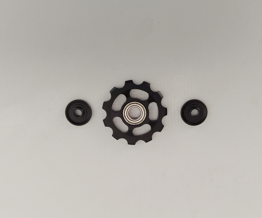 Brand new  sealed bearing alloy derailleur rollers. Works with 8, ,9 & 10 speed rear derailleurs
