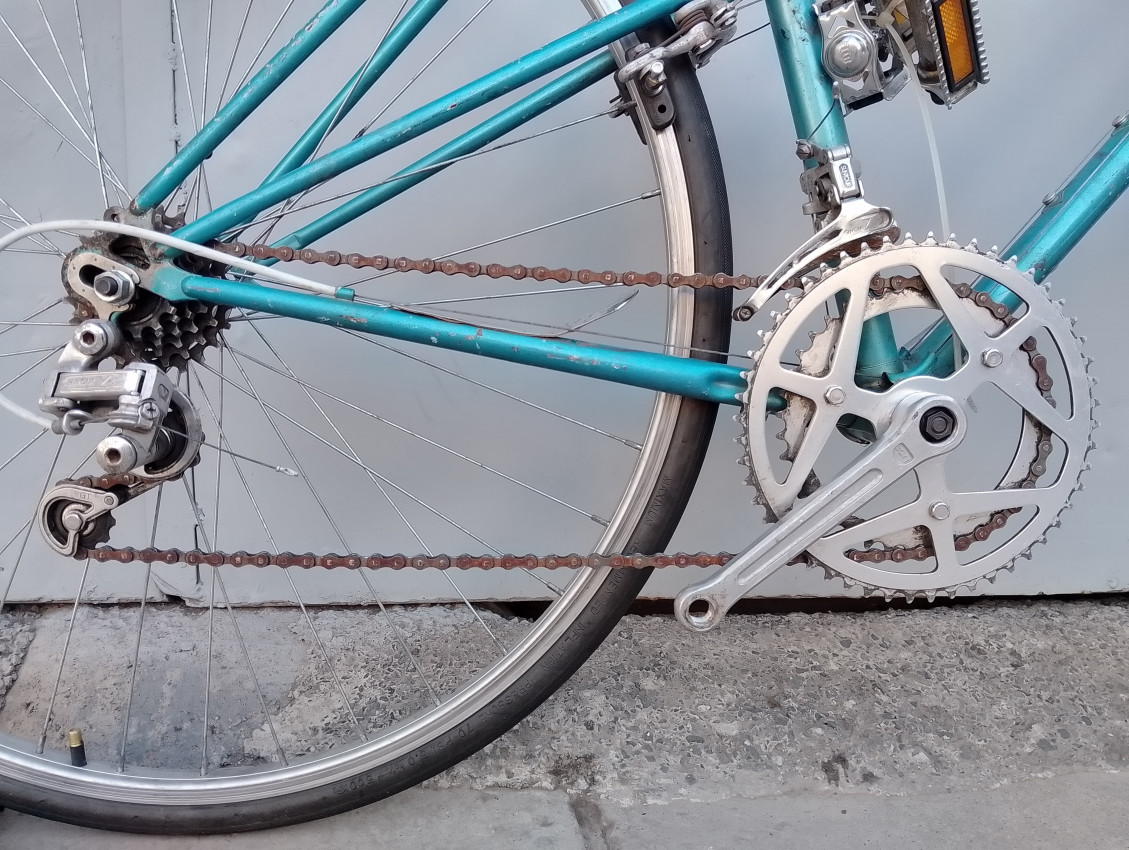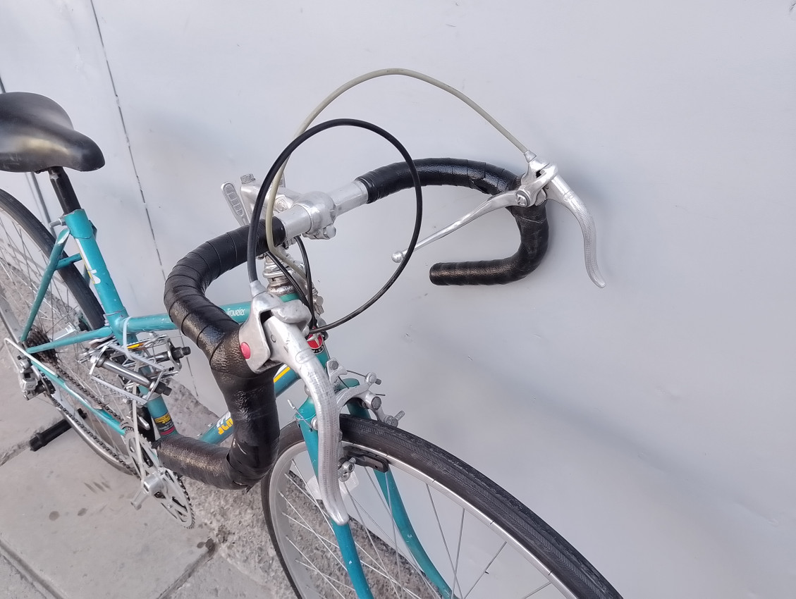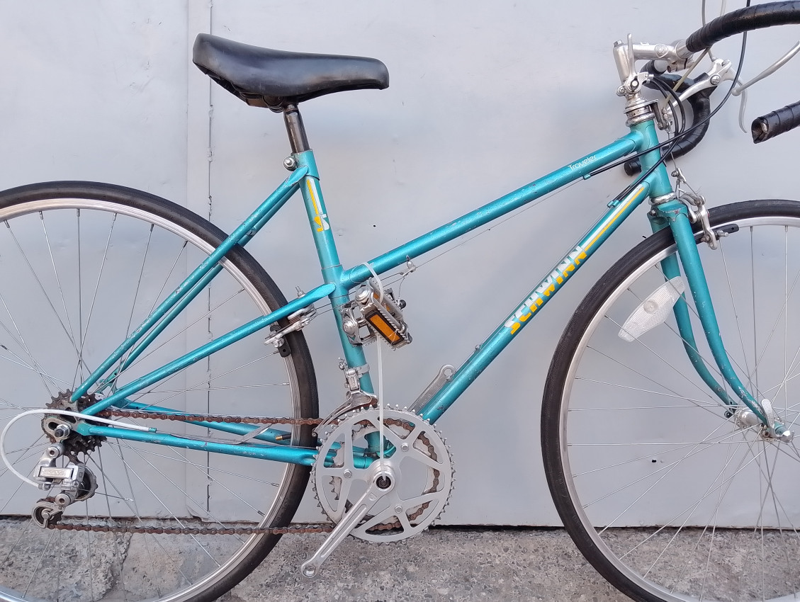 A High quality used vintage race bike. Wheel size 27 1 1/4. Frame material steel. Top tube 51cm, seat tube height 49cm. Gear system 2×6 with thumb shifts. Cog type freewheel. Other features: front wheel have quick release, Front and rear aluminium rims.