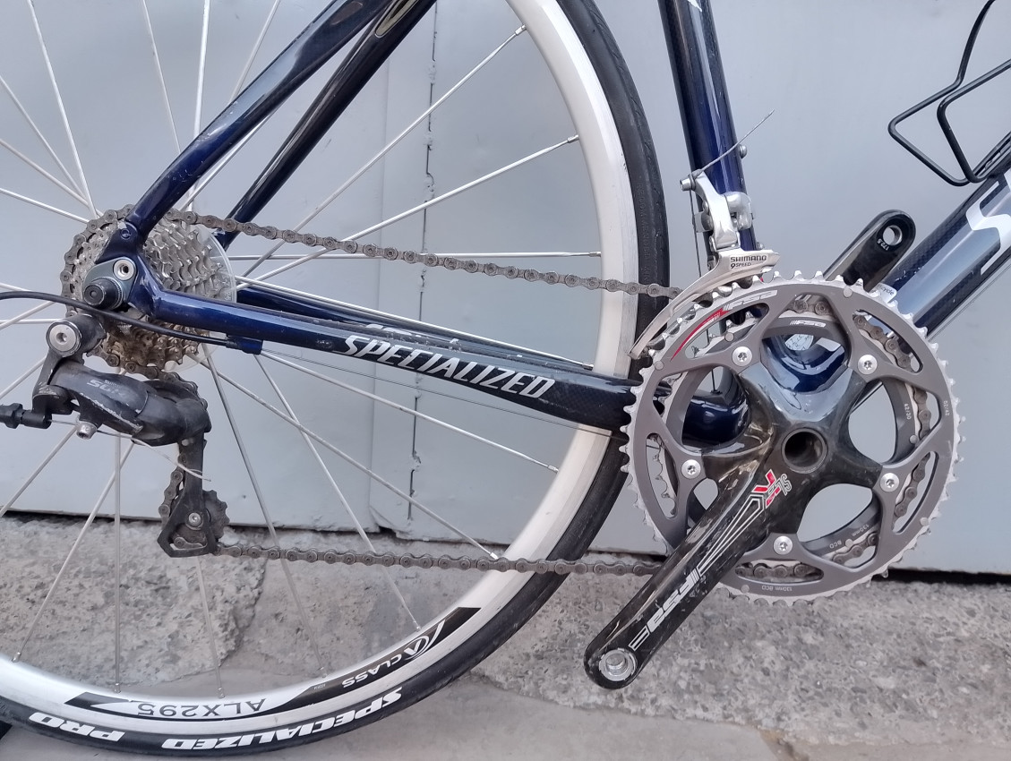 High quality used race bike. Wheel size 700c. Carbon & alloy Frame with carbon fork and carbon cranks.Top tube 54cm, seat tube height 50 cm. Gear system, Shimano Sora, 2x9. Cog type cassette. Other features: HT2 BB, all wheels have quick release with bladed spokes.