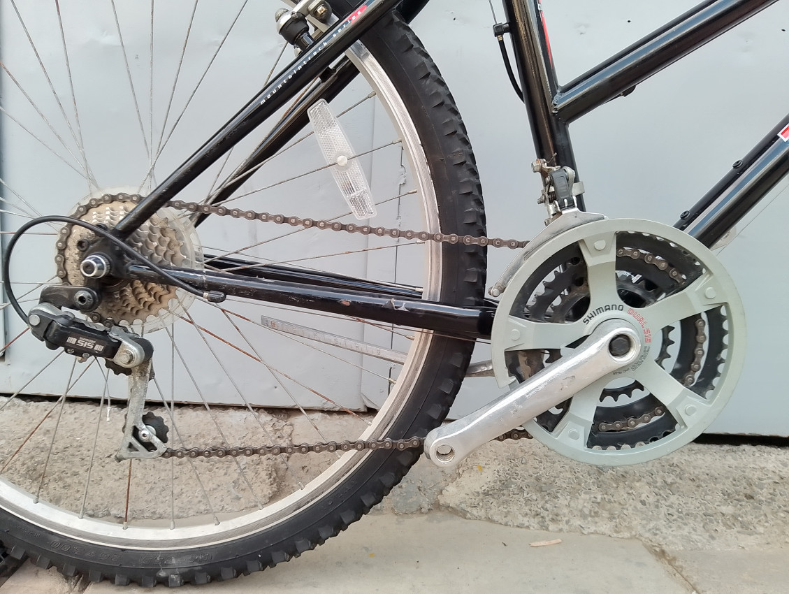 High quality used mountain bike. Wheel size 26. Frame material steel with steel fork. Top tube 20.5', seat tube height 17'. Gear system 3x7 with grip shift. Cog type freewheel. quick release on both wheels.