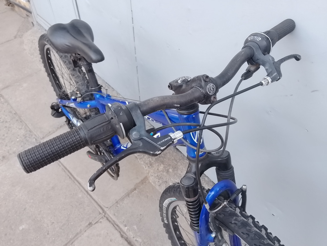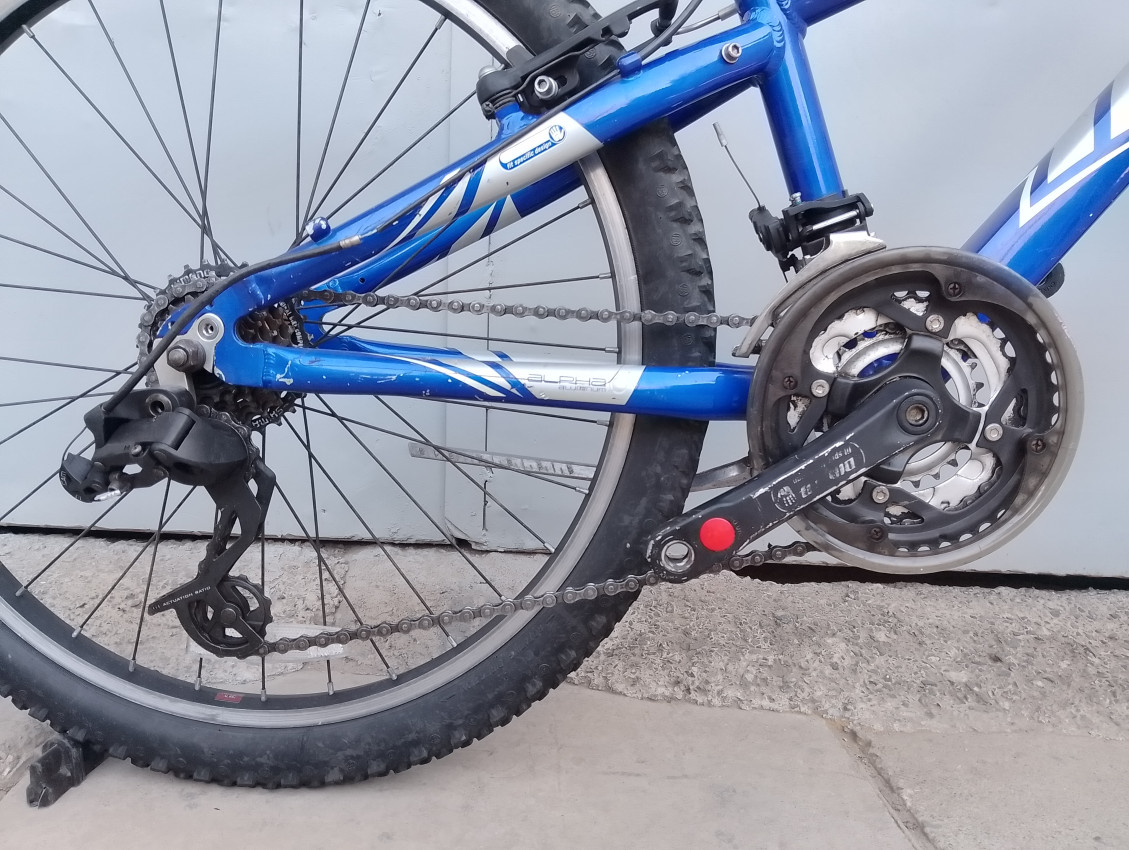High quality used mountain bike. Wheel size 24 Frame material aluminium. Gear system 3x7 speed with grip shifters. Cog type freewheel. Other features: threaded alloy suspension fork, sealed BB.