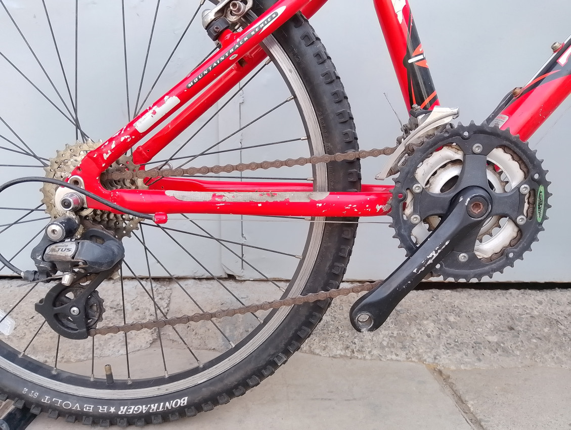 High quality used mountain bike. Wheel size 24 Frame material aluminium. Gear system 3x8 speed with grip shifters. Cog type freewheel. Other features: threaded alloy suspension fork.