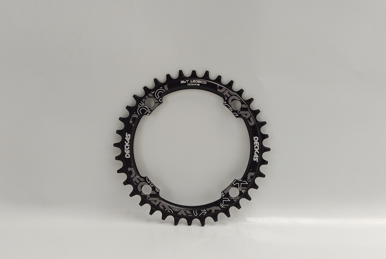 Brand new DECKAZ alloy chain ring, 120mm BCD 36t. Suitable for gravel and MTB bikes. Shimano/SRAM compatible and also compatible with 9-11 speed chains.