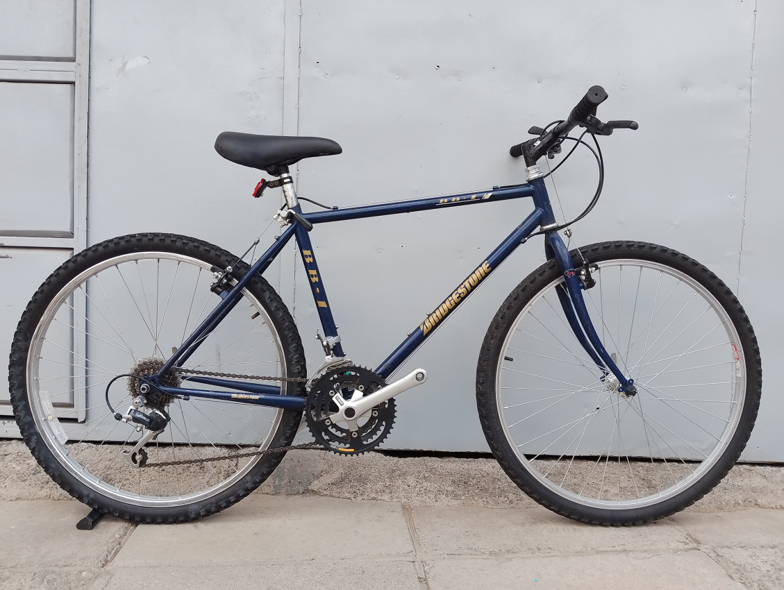 High quality used mountain bike. Wheel size 26. Frame material steel. Top tube 21.5', seat tube height 18'. Gear system 3x7 with thumb shifters. Cog type cassette.quick release on all wheels.