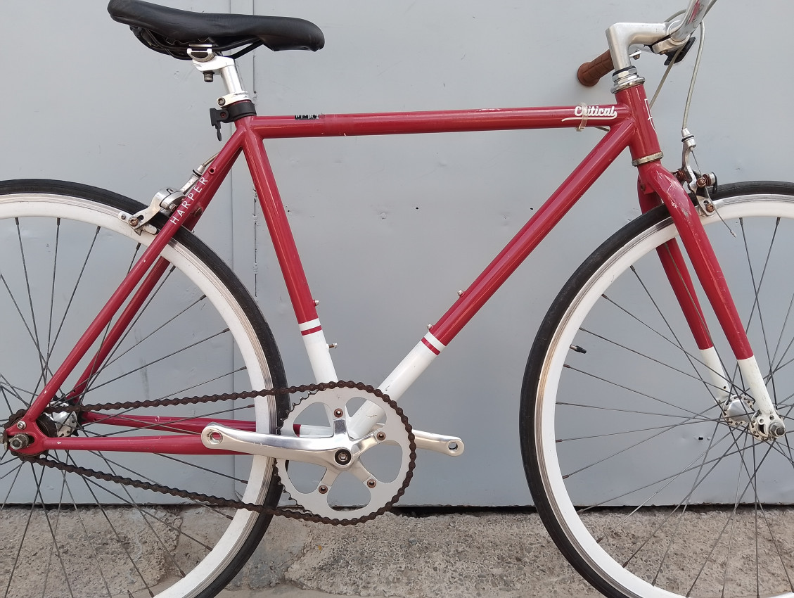 High quality used hybrid bike. Wheel size 700c. Frame material steel. Top tube 21.5', seat tube height 19'. Gear system single speed. Cog type freewheel, sealed BB.
