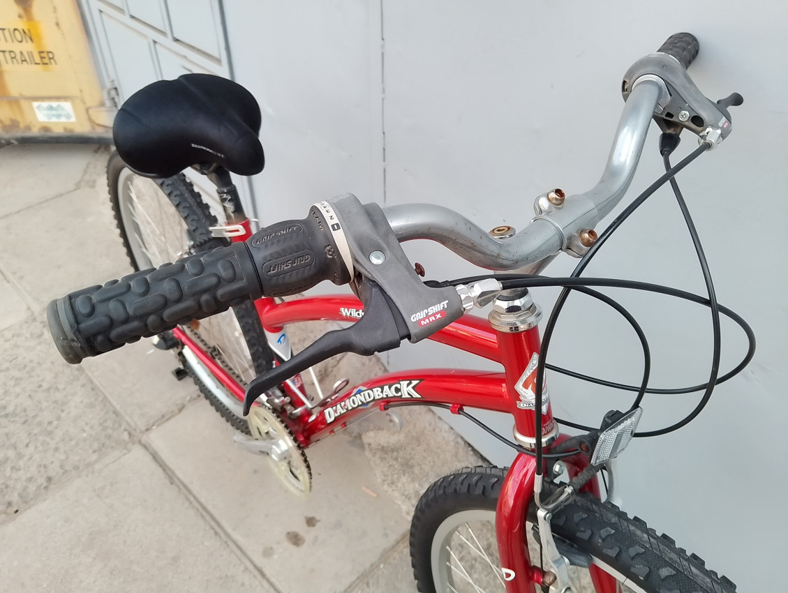 High quality used mountain bike. Wheel size 26. Frame material steel with steel fork. Top tube 21', seat tube height 16'. Gear system 3x7 with grip shift. Cog type cassette. Quick release on both wheels.