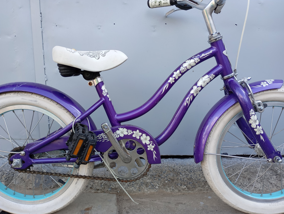 Used kids bike, wheel size 16, brand Electra, frame material steel. Suitable for ages 5-7 year