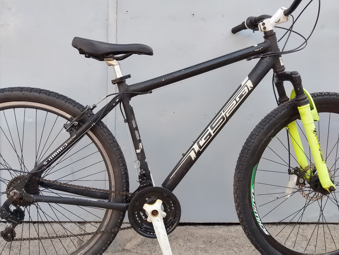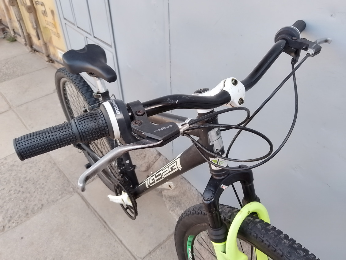 High quality used mountain bike. Wheel size 29. Frame material Aluminium with steel front suspension fork. Top tube 23', seat tube height 19'. Gear system 3x7 with grip shifts. Cog type freewheel. Other features: sealed BB, all wheels have quick release & threadless steel suspension fork.