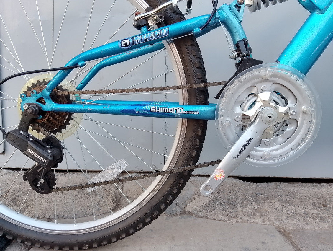 High quality used mountain bike. Wheel size 26. Frame material Aluminium with front and rear suspensions. Top tube 22', seat tube height 17'. Gear system 3x7 with grip shifts. Cog type freewheel Other features: rear suspension, threaded alloy front suspension fork