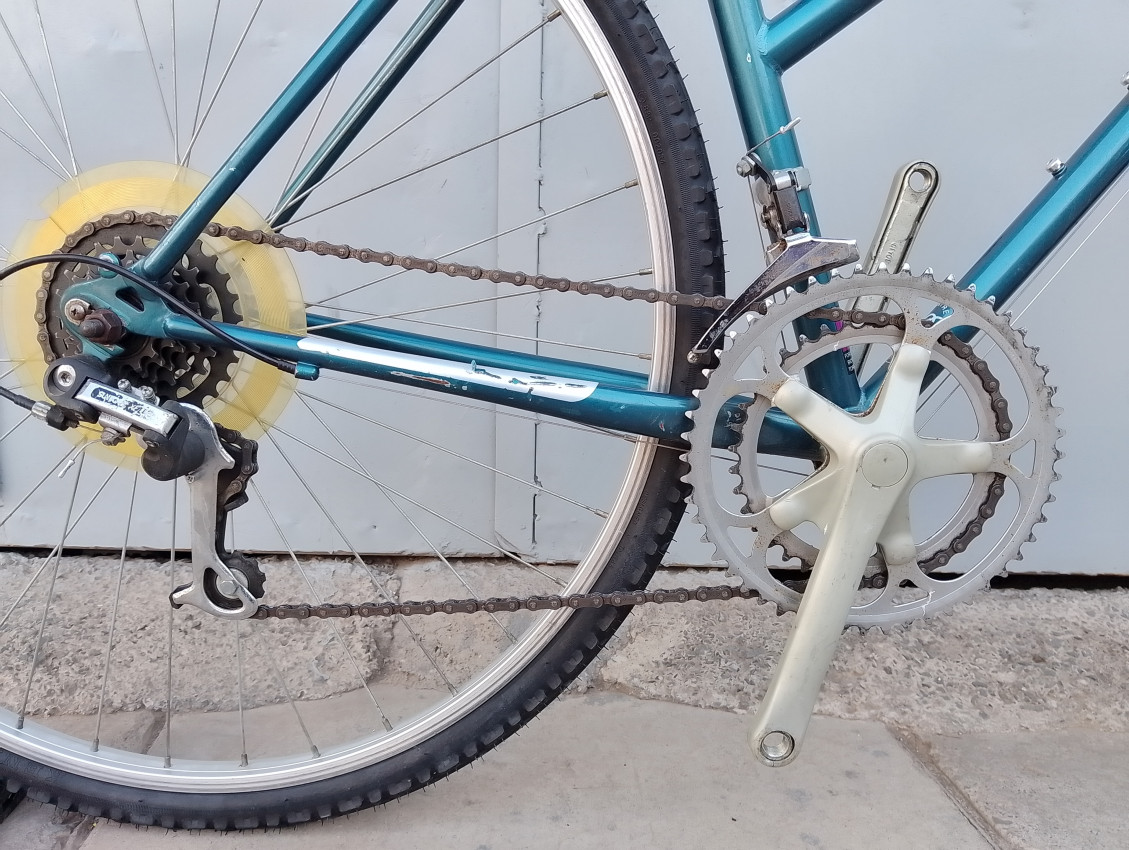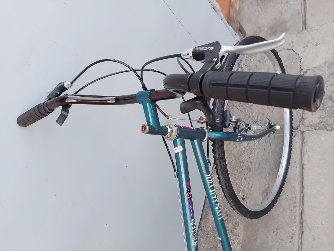 High quality used hybrid bike. Wheel size 700c. Frame material steel with steel fork. Top tube 20', seat tube height 18.5'. Gear system 2x6 with thumb shift . Cog type freewheel. Other feature: all wheels have quick release.