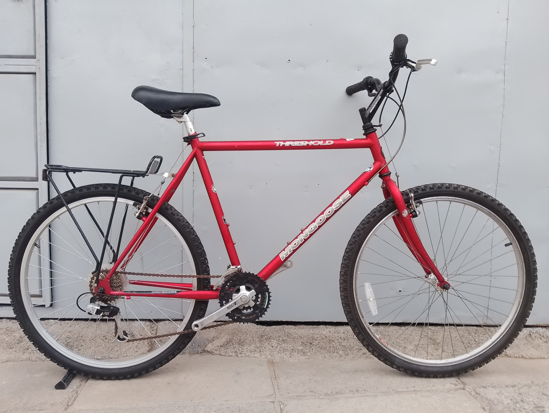 High quality used mountain bike. Wheel size 26. Frame material steel. Top tube 23', seat tube height 22'. Gear system 3x7 with grip shifts. Cog type freewheel. Other features: all wheels have quick release,sealed BB.