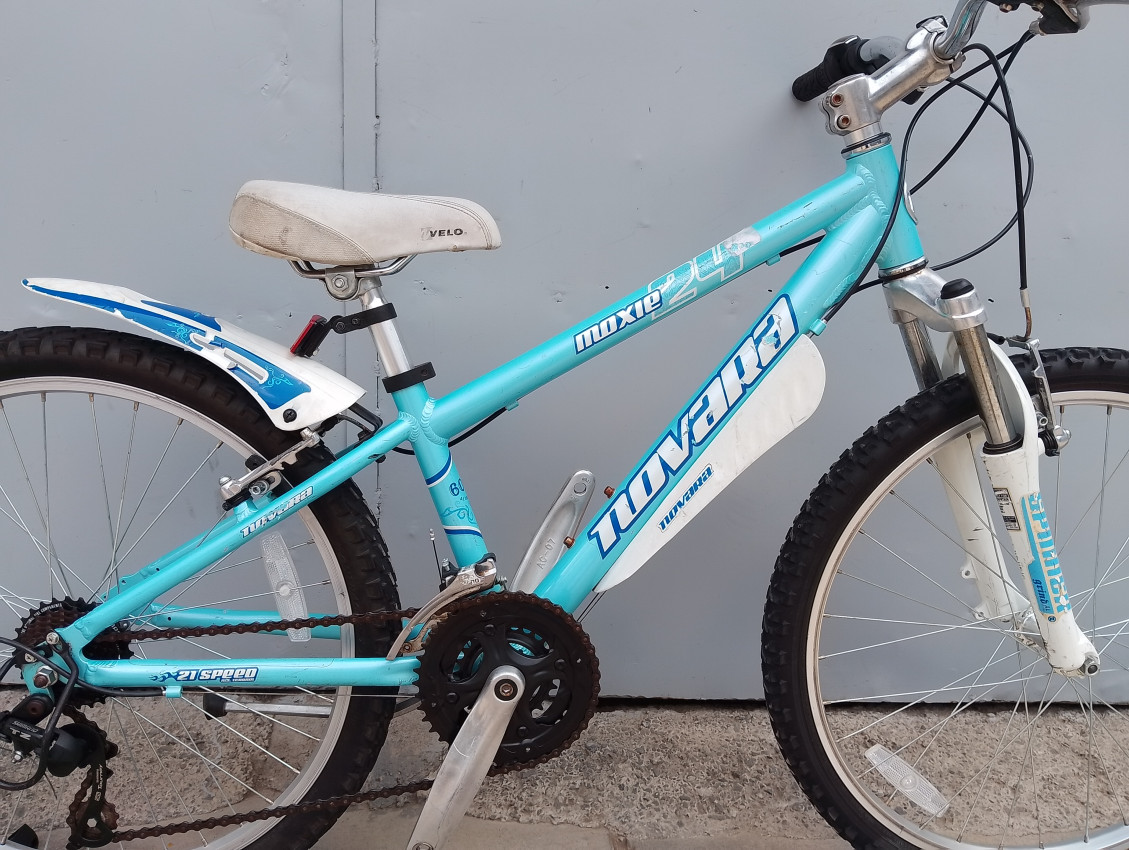 High quality used mountain bike. Wheel size 24 Frame material aluminium. Gear system 3x7 speed with shimano grip shifters. Cog type freewheel. Other features: front suspension fork, sealed BB.