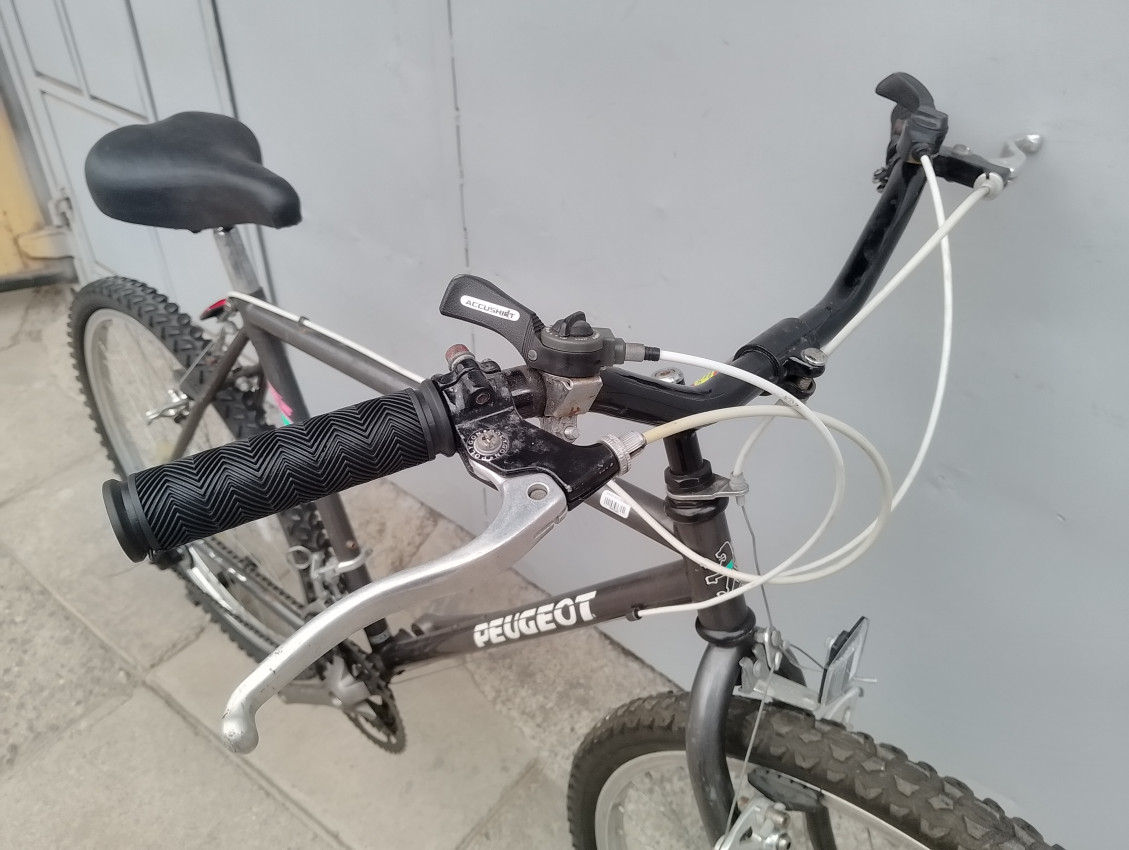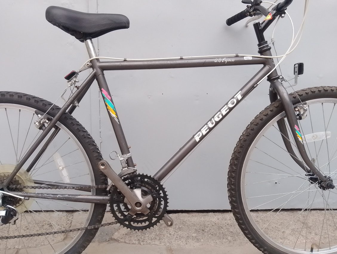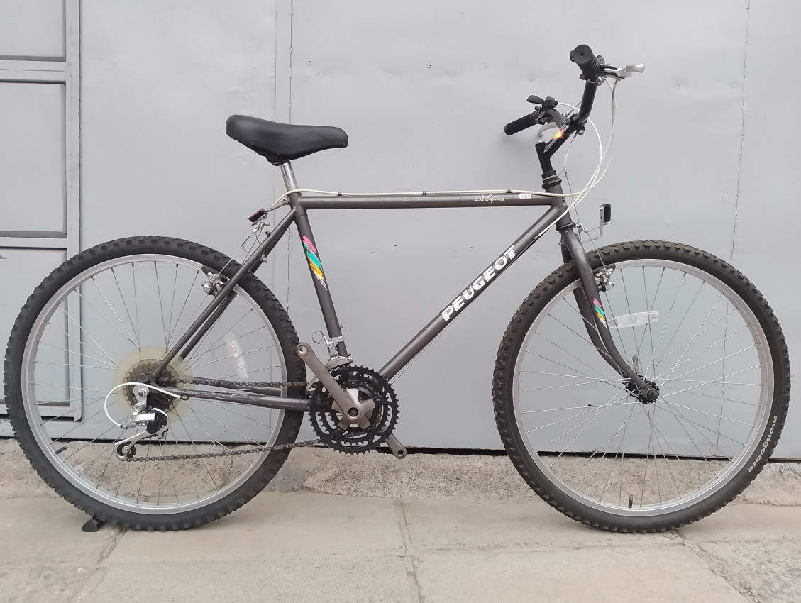 High quality used mountain bike. Wheel size 26. Frame material steel with steel fork. Top tube 22', seat tube height 19'. Gear system 3x6 with thumb shift. Cog type freewheel. Other features: all wheels have quick release.