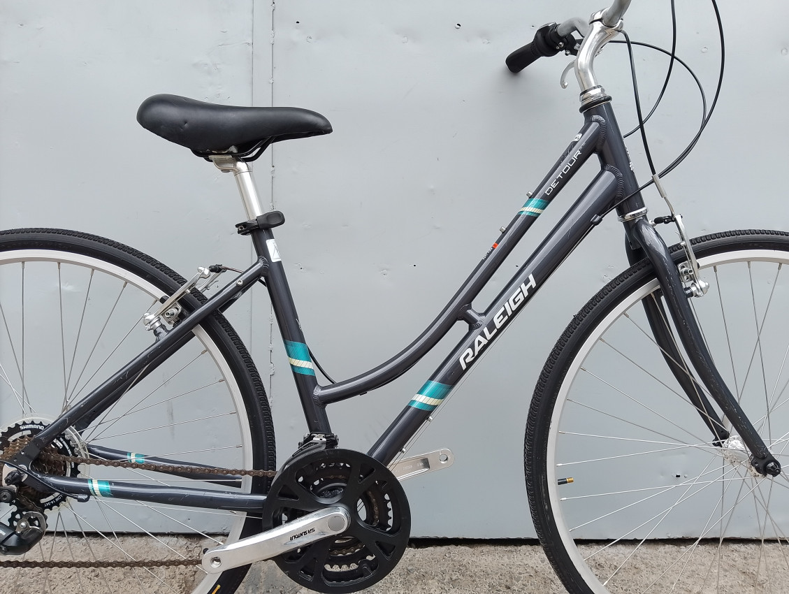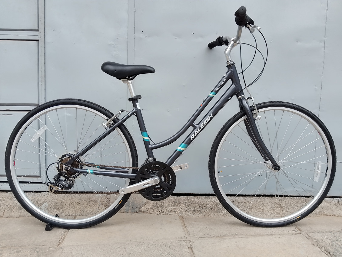 High quality used hybrid bike. Wheel size 700c. Frame material Aluminium with steel fork. Top tube 21', seat tube height 17.5'. Gear system 3x7 with shimano grip shifts. Cog type freewheel. Other features: sealed BB all wheels have quick release.