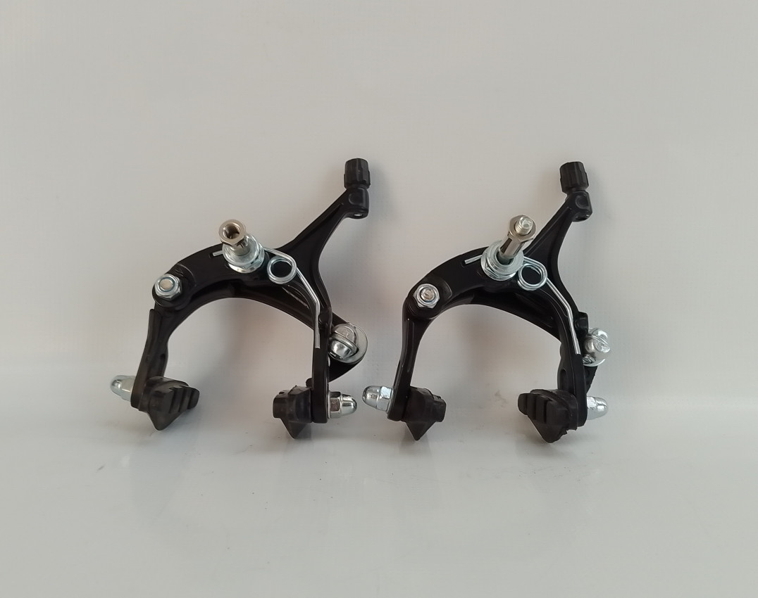 Brand new dual pivoted aluminium alloy road bike brake callipers,Quick-release mechanism for easy wheel removal and includes durable brake pads.