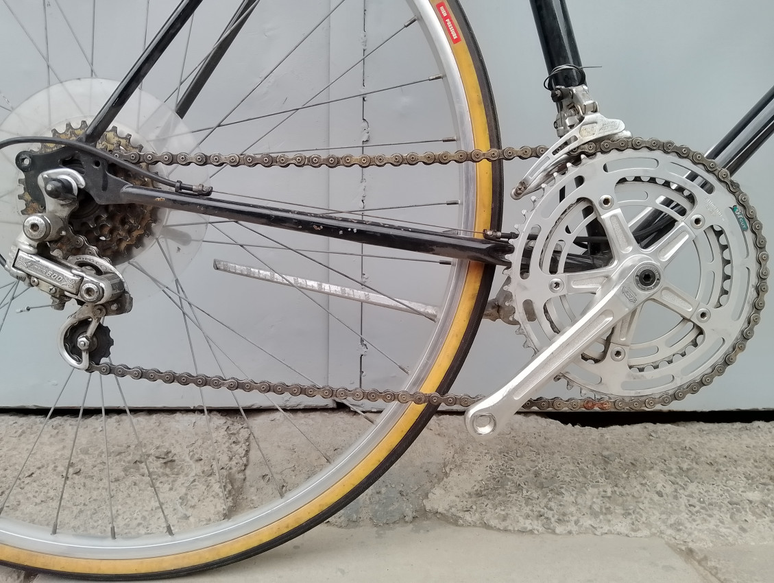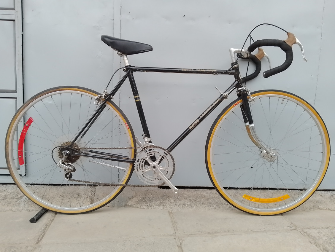 A High quality used vintage race bike. Wheel size 27 1 1/4. Frame material steel. Top tube 56cm, seat tube height 55cm. Gear system 2x5 with thumb shifts. Cog type freewheel. Other features both wheels have quick release axle.