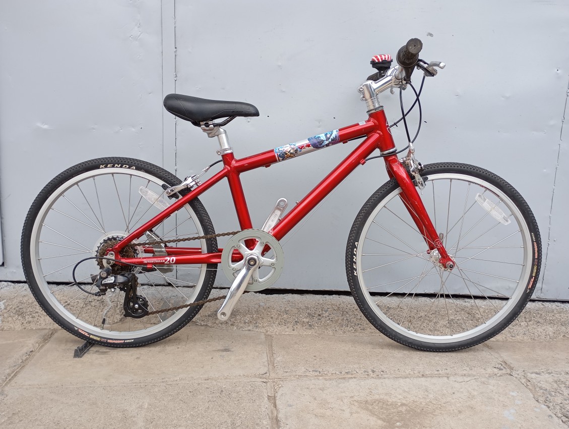 High quality used mountain bike. Wheel size 20. Frame material aluminium. Gear system 1x7 speed with grip shifters. Cog type freewheel. Suitable for ages 6-11 years.