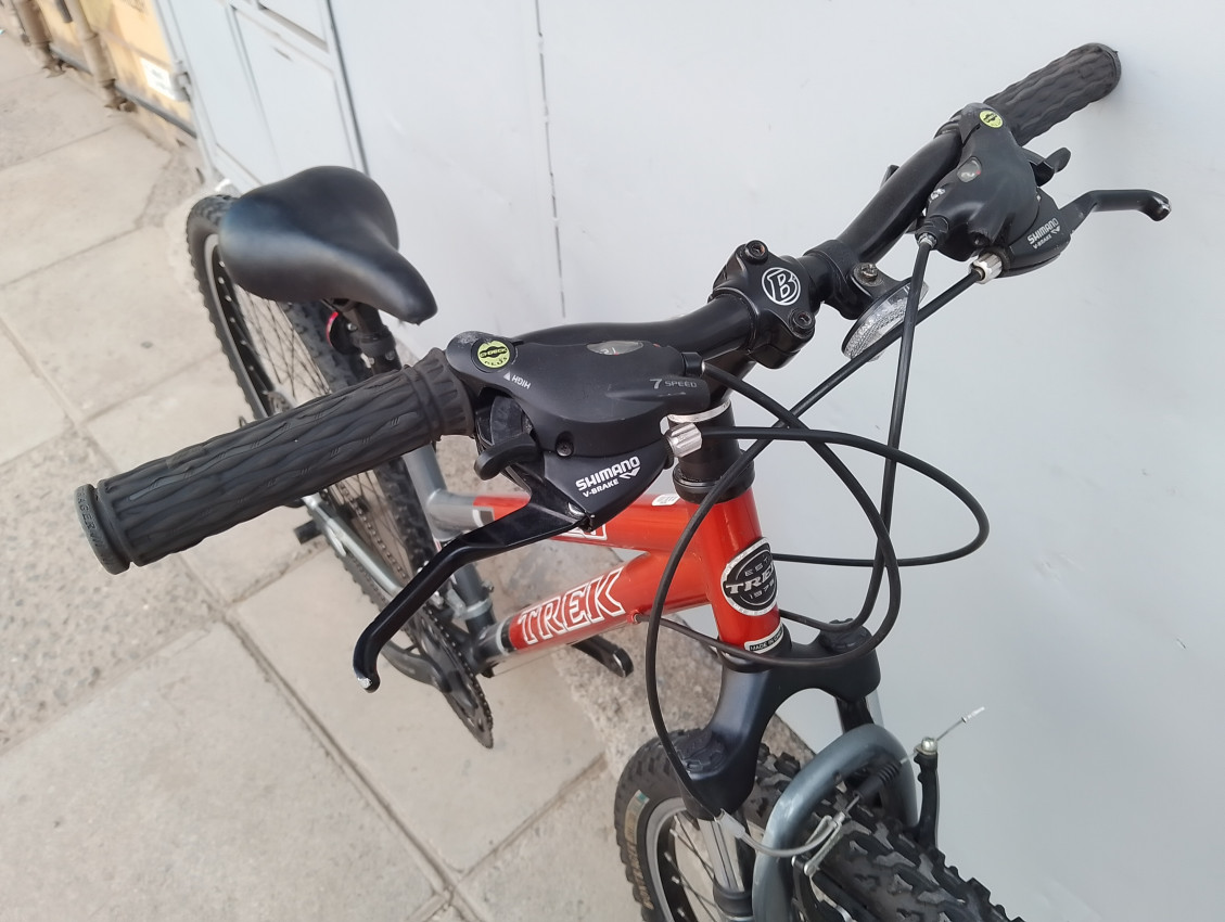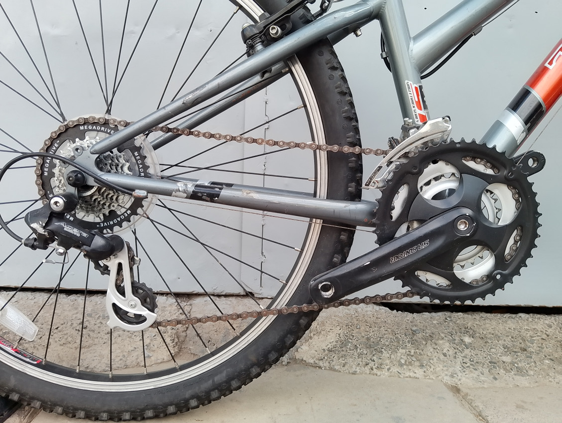 High quality used mountain bike. Wheel size 26. Frame material aluminium with alloy front suspension fork. Top tube 20.5', seat tube height 13'. Gear system 3x7 with shimano shift brake levers. Cog type freewheel. Other features: all wheels have quick release, threadless alloy suspension fork.