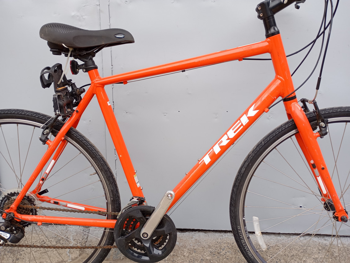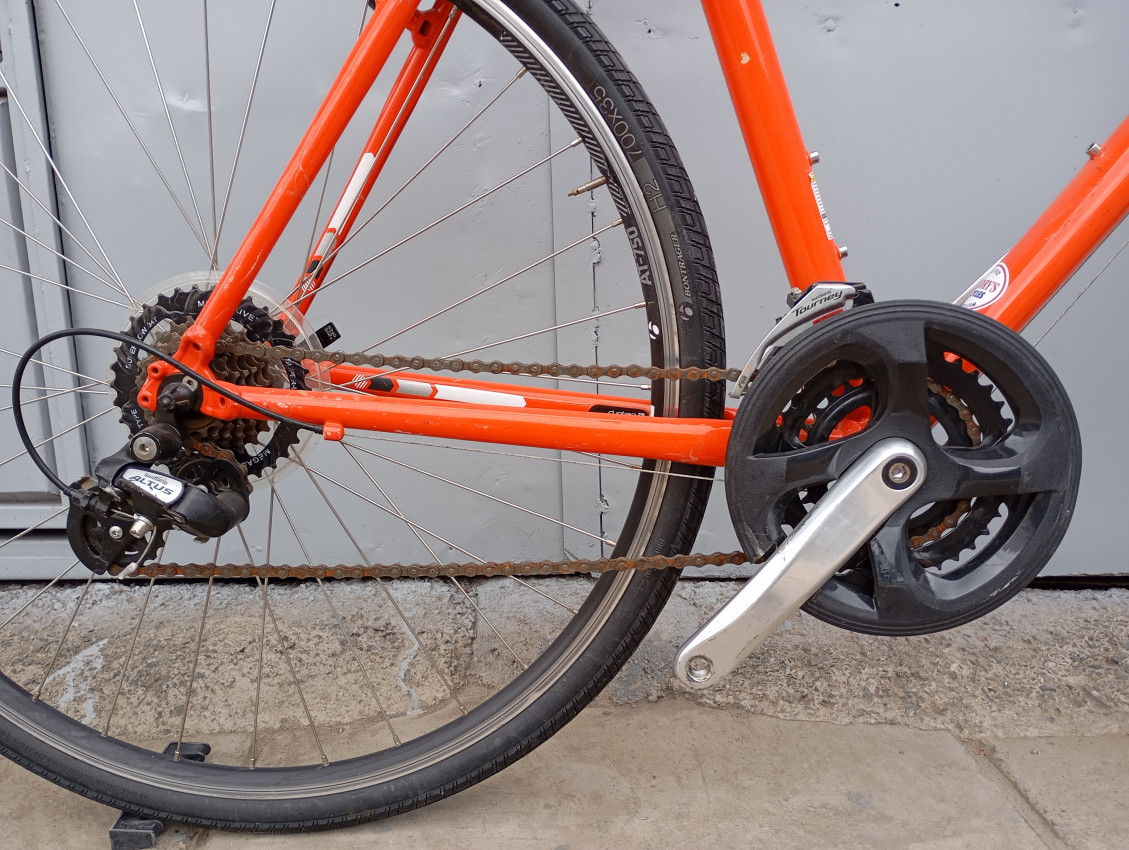 High quality used hybrid bike. Wheel size 700c. Frame material Aluminium with aluminium fork. Top tube 22.5', seat tube height 22'. Gear system 3x7 with shimano trigger shift brake levers . Cog type freewheel. Other features: sealed BB all wheels have quick release.