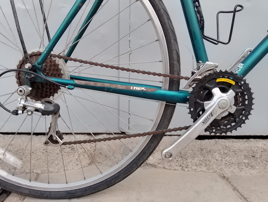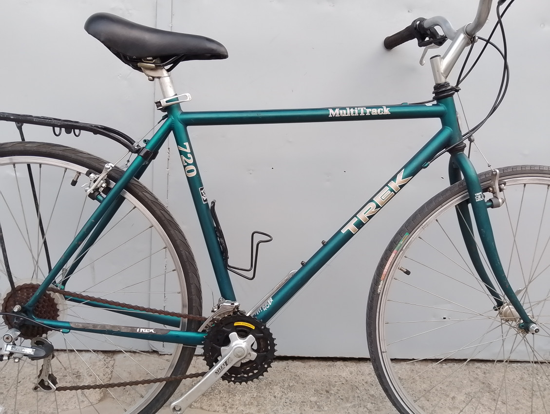High quality used hybrid bike. Wheel size 700c. Frame material steel.Top tube 22', seat tube height 21'. Gear system 3x7 with trigger shifts. Cog type cassette. Other features: all wheels have quick release.